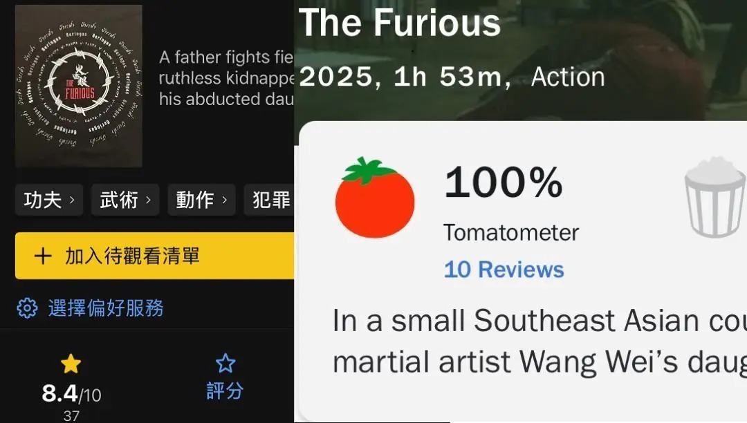 谢苗和日本导演谷垣健治合作的《火遮眼》,2025年9月份在多伦多电影节已经上映过,当时收获无数好评,烂番茄新鲜度高达100%,IMDB网站开分8.4。资深影评人评价影片的故事线比较简单,但动作戏尺度大,且非常生猛。