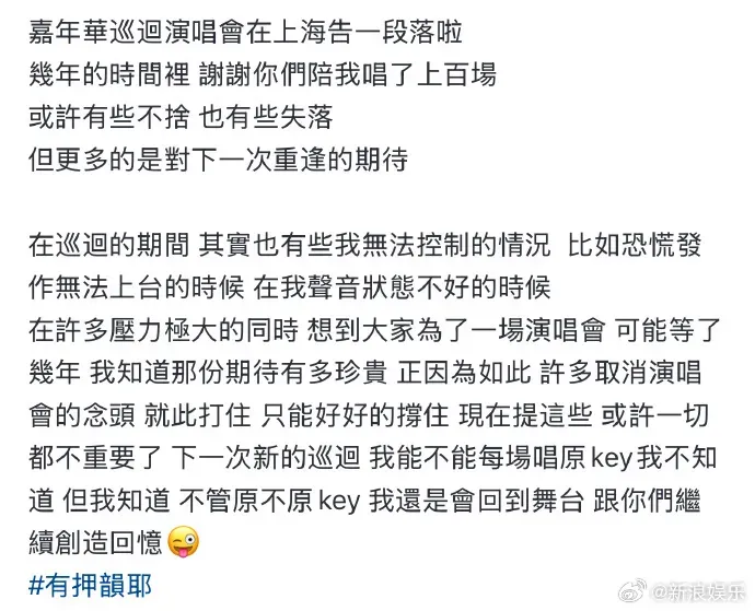 10月12日,周杰伦发文,透露演唱会期间也会有自己无法控制的情况,比如恐慌发作无法上台等。